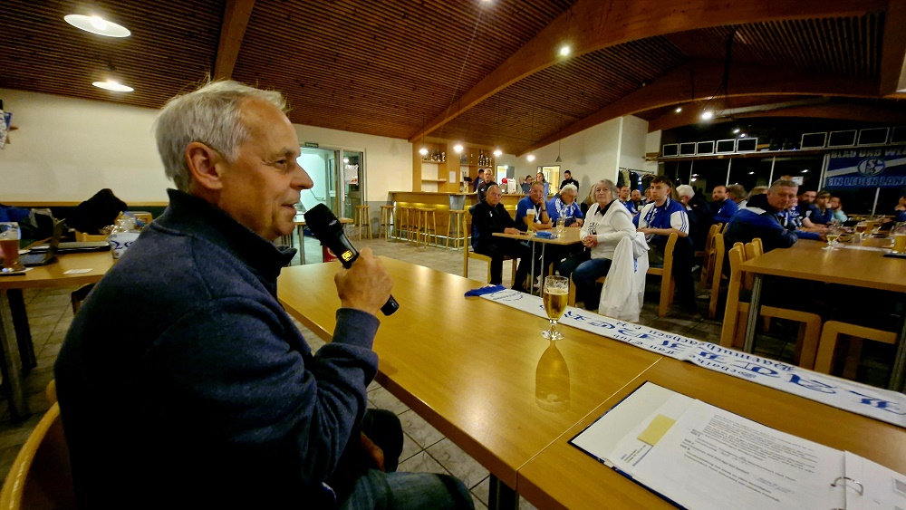 Olaf Thon hörte genau zu, als Norbert Beith durch die einzelnen Punkte führte. Das Hauptthema war wieder die Zuteilung und der Abruf der Karten, sowie die Anwesenheitskontrollen bei den Auswärtsspielen. Hierzu stellte Norbert eine neue Regelung vor, was zu einigen Diskussionen führte.