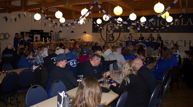 Schon beim Betreten des Saals spürte man die besondere Atmosphäre: 14 Fanclubs, 114 Mitglieder, Fans und Sympathisanten, vereint durch die Liebe zu Schalke 04.