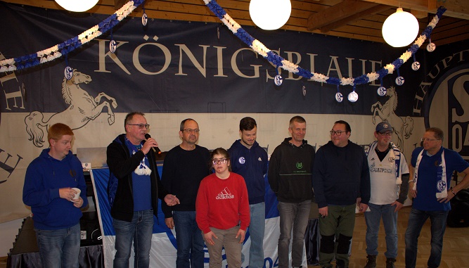 Peter Belitz, 2. Vorsitzender vom gastgebenden Fanclub „Königsblaue Niedersachsen e.V.“ begrüßte alle Gäste sehr herzlich und unseren stellvertretenden Bezirksleiter Norbert Beith war klar: Heute geht es nicht nur um Fußball, sondern auch um Zusammenhalt und soziales Engagement.